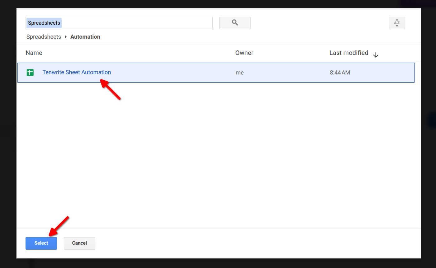 In the Tenwrite add-on or web dashboard, go to WordPress > Automations in the sidebar and switch to the Sheets tab.